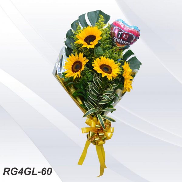 Ramo floral de mediano tamaño. Los girasoles son de tamaño regular.